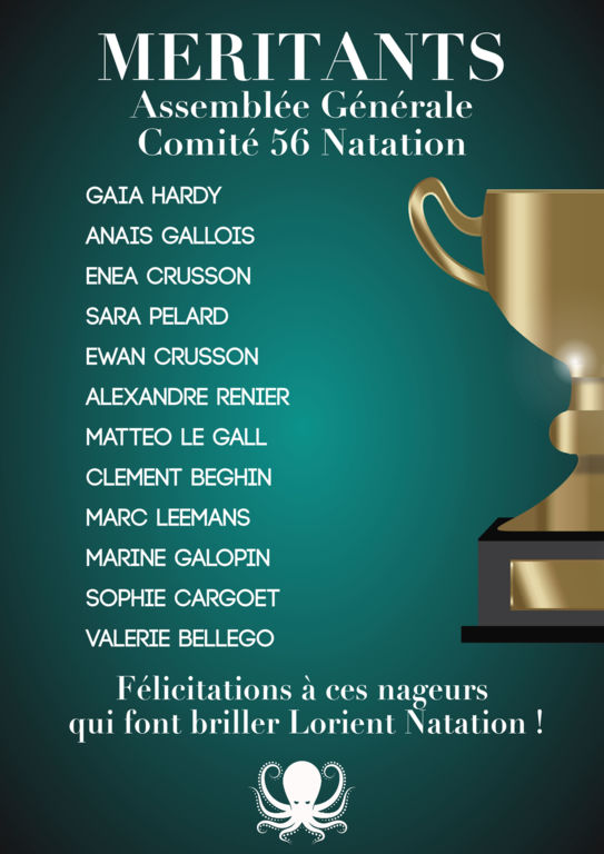 Nageurs récompensés lors de l'ASSEMBLÉE GÉNÉRALE DU COMITÉ 56 LE DIMANCHE 22 OCTOBRE 2017